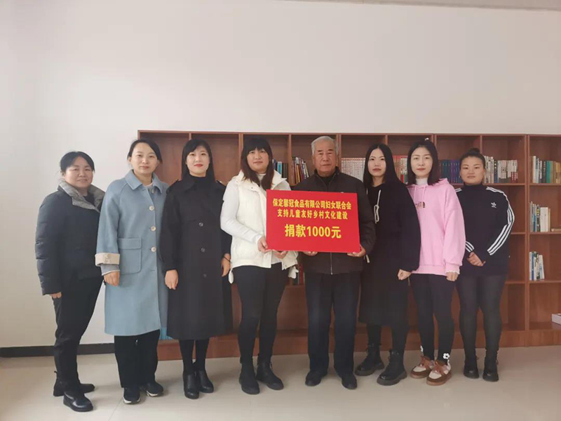滿城區(qū)婦聯(lián)倡導愛心企業(yè)支持兒童友好鄉(xiāng)村文化建設。2021年11月19日,保定馨冠食品有限公司婦女聯(lián)合會在世界兒童日之際,到滿城區(qū)神星鎮(zhèn)魏莊村捐助“公益書屋”現(xiàn)金1000元,為孩子們送去了冬日里最溫暖的禮物。